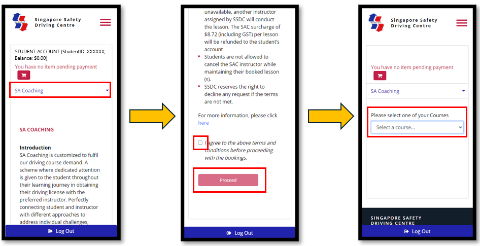 - Select SA Coaching> tick the checkbox> Proceed> Course.